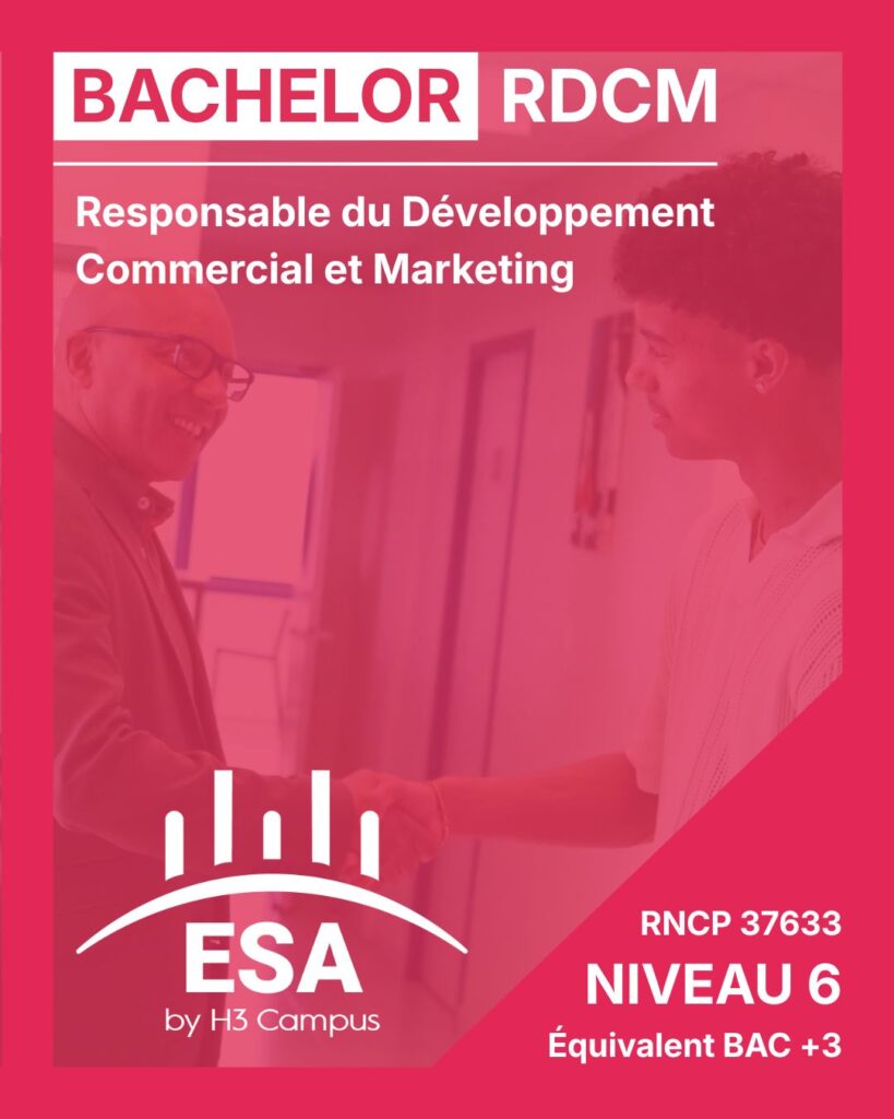 C’est officiel ! L’ESA – École Supérieure de l’Alternance by H3 Campus de Cholet annonce l’ouverture de son nouveau Bachelor RDCM – Responsable du Développement Commercial et Marketing. Cette nouvelle formation de niveau 6 (Bac +3), proposée en alternance, répond aux besoins actuels des entreprises en matière de développement commercial, de marketing stratégique et de pilotage de la performance commerciale.